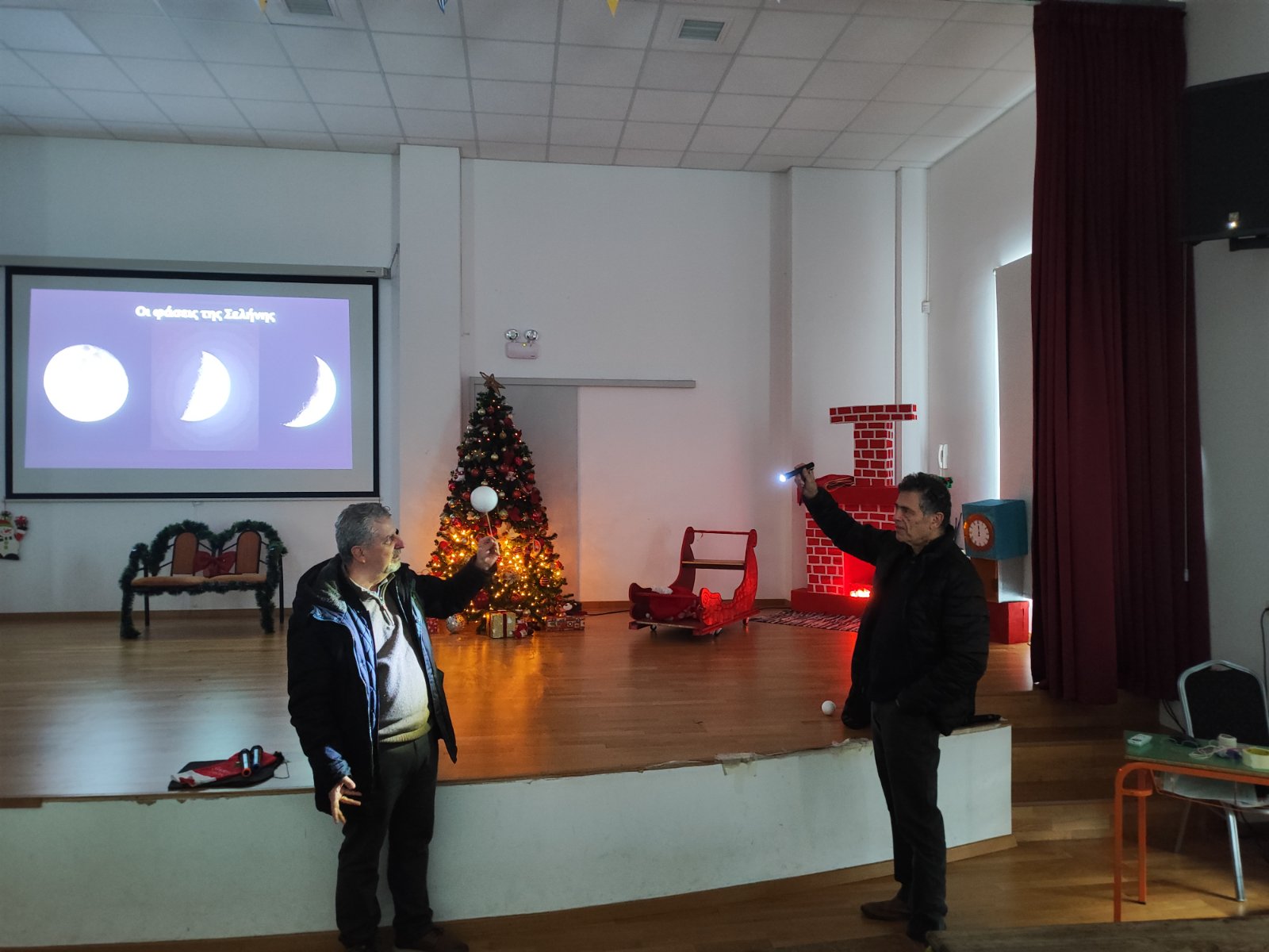 Την Τετάρτη 17 Δεκεμβρίου τα μέλη του ΣΕΑΒ (Σταύρος Λέτης & Διαμαντής Χατζηπαναγιώτου) επισκέφθηκαν το 2ο Δημοτικό Σχολείο Αλιάρτου. Ο Σταύρος Λέτης, με την ομιλία του, ταξίδευσε τους μαθητές της ΣΤ τάξης στο Σύμπαν περνώντας διαδοχικά από τον Ήλιο, τη Σελήνη, τους πλανήτες, τους αστεροειδείς, τους κομήτες, τα νεφελώματα, τα αστρικά σμήνη του Γαλαξία μας αλλά και τους άλλους γαλαξίες.